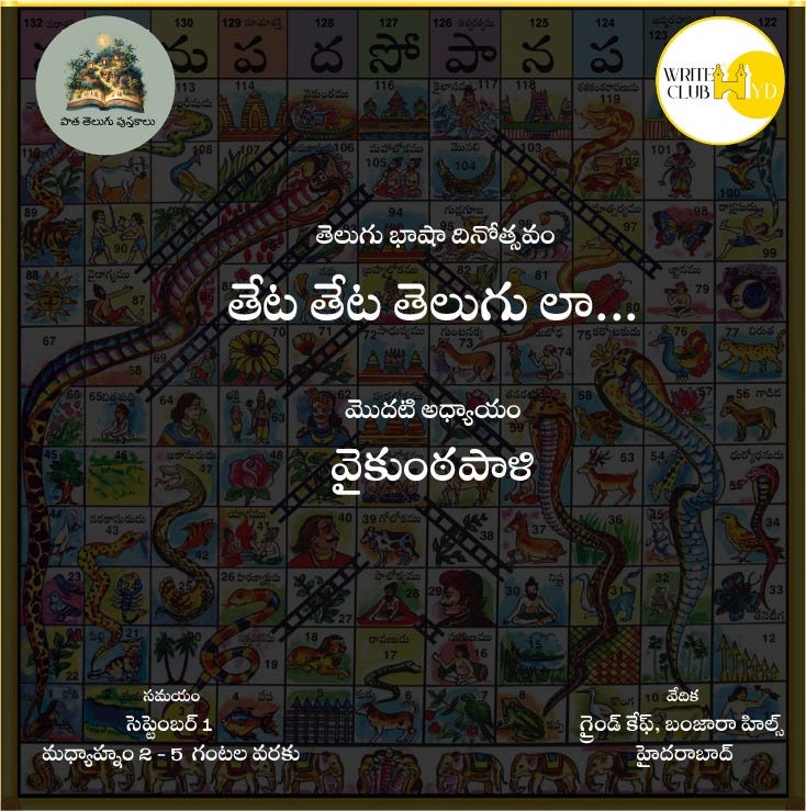 Write Club Hyderabad and పాత తెలుగు పుస్తకాలు are hosting a Telugu writing event tomorrow (August29 + September9 are Telugu Language Days). We planned a fun event. Come and write in Telugu :)